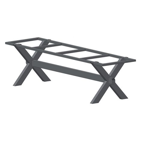 Каркас до столу Х-лофт виготовлений із фарбованої профільної сталевої плоскої труби 80*40*1,5 мм., рамка під стільницю 40*40*1,5 мм., ніжки регульовані М8. Каркас розроблений спеціально під велику та важку стільницю з масиву дерева та ін. розміром більше 3-ох метрів. Вартість каркасу під певний розмір столу розраховується індивідуально.