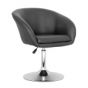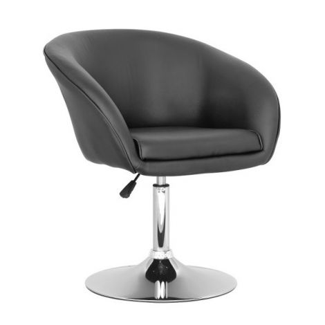 Універсальне та стильне крісло Мурат Chrome , для кафе, бару, ресторану, офісу, а також для зон очікування. Cпинка крісла плавно переходить у підлокітники, оббивка виконана зі штучної шкіри, забарвлення на вибір, міцна кругла база виготовлена з хрому, сидіння обертається навколо своєї осі, є регулювання висоти, надійна конструкція, якісні та довговічні матеріали.