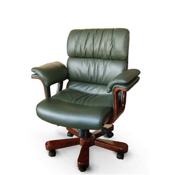 Поворотне крісло Флоренція LB керівника в натуральній шкірі з дерев'яними елементами та механізмом мультиблок. Шкіряне крісло має м'які підлокітники на дерев'яному каркасі і низьку спинку; База-металевий каркас з дерев'яними накладками. Крісла мають механізм мультиблок (качання всього крісла з регулюванням ступеня жорсткості і фіксація в чотирьох положеннях). Колір шкіри – зелений, чорний: Колір дерева – Радіка.