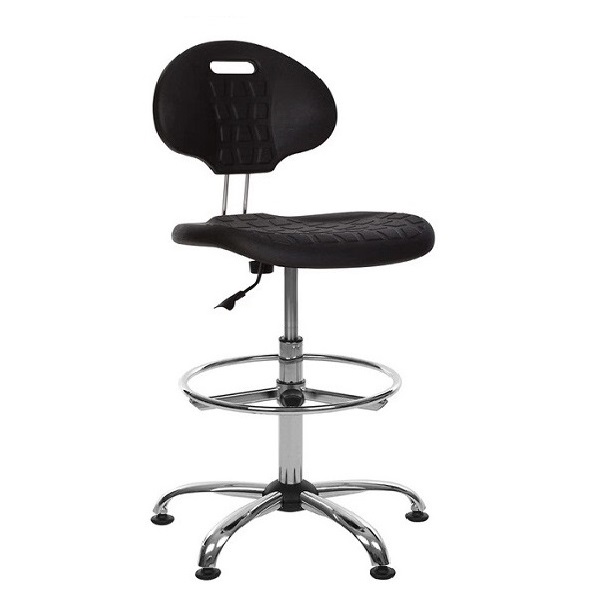 Високий стілець для медперсоналу на хромованій або пластиковій базі з регулюванням висоти посадки за рахунок газліфту збільшеної довжини з сидінням та спинкою з пінополіуретану високої щільності, а також з підставкою для ніг.